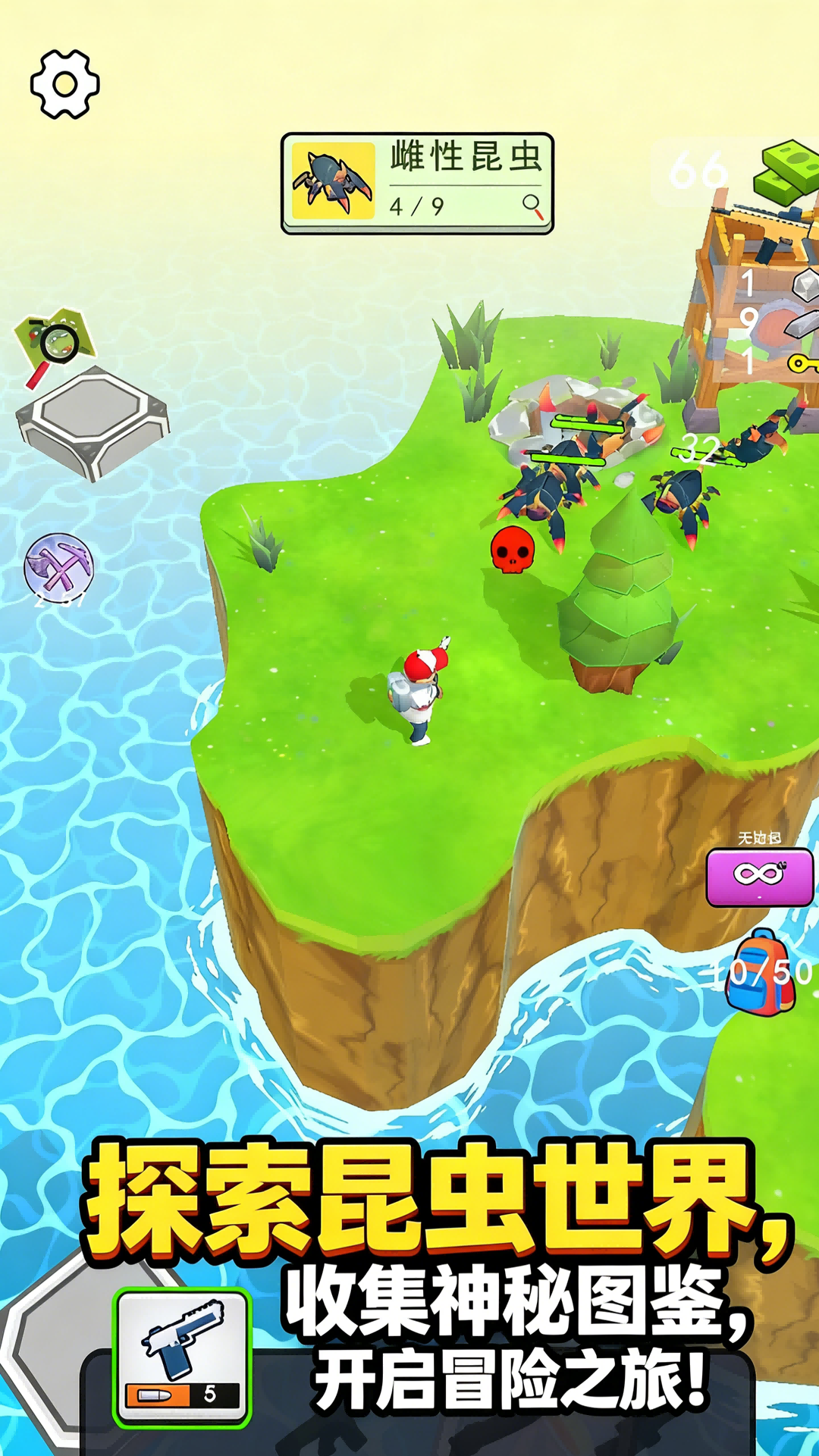 1、收集木材,石头,金属等资源,您可以自由设计和建造。