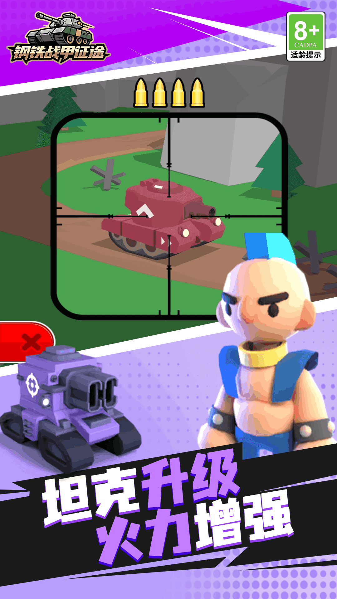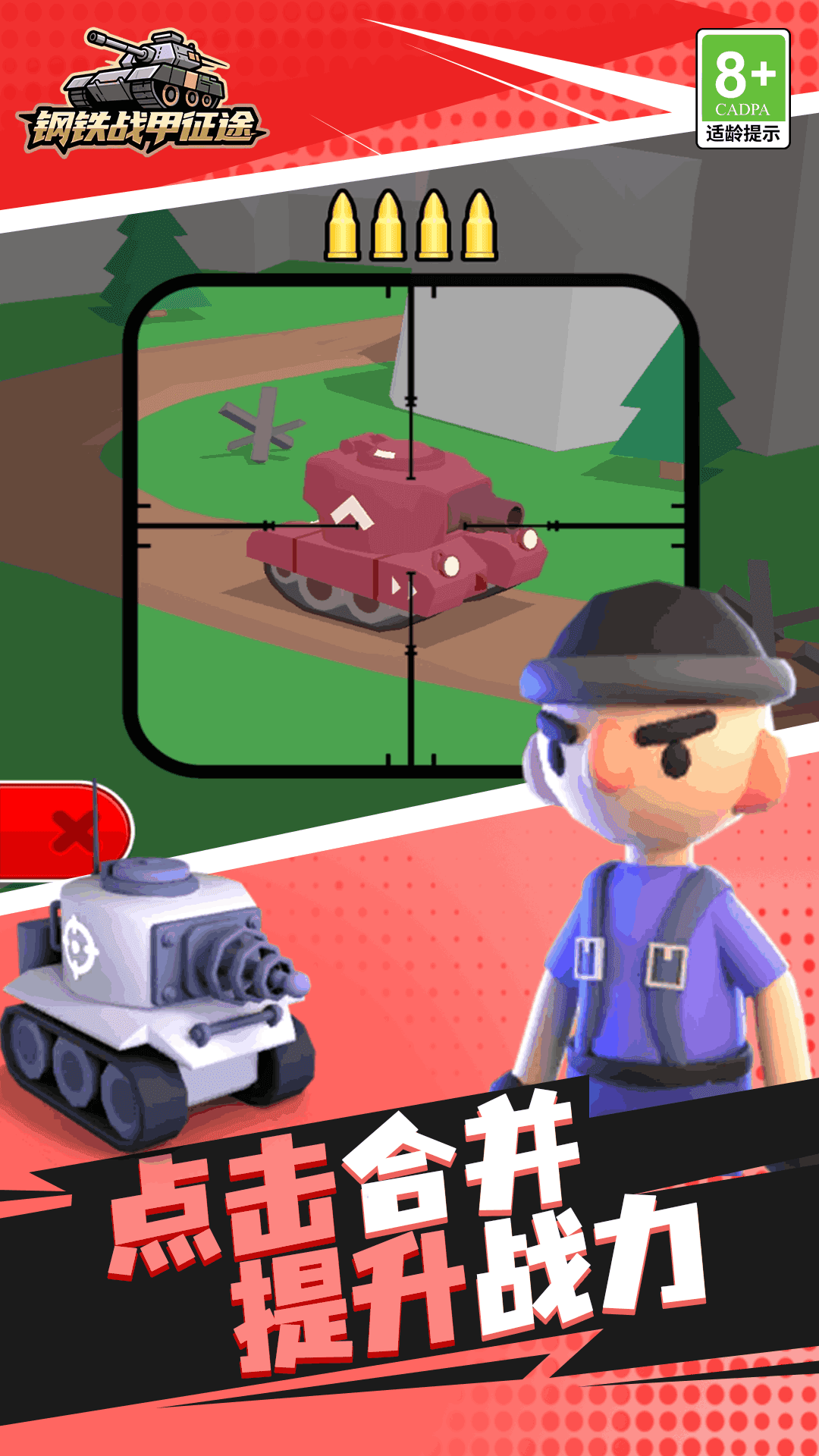 钢铁战甲征途,坦克作战敌人展示刺激对决,来试试这个进入游戏中任务奖励,敌人快速瞄准开炮开启人生传奇,驾驶坦克开启不断的合并挑战到底,高级坦克的战斗力也是随着大家的关卡推进不断的解锁高难度的战斗!