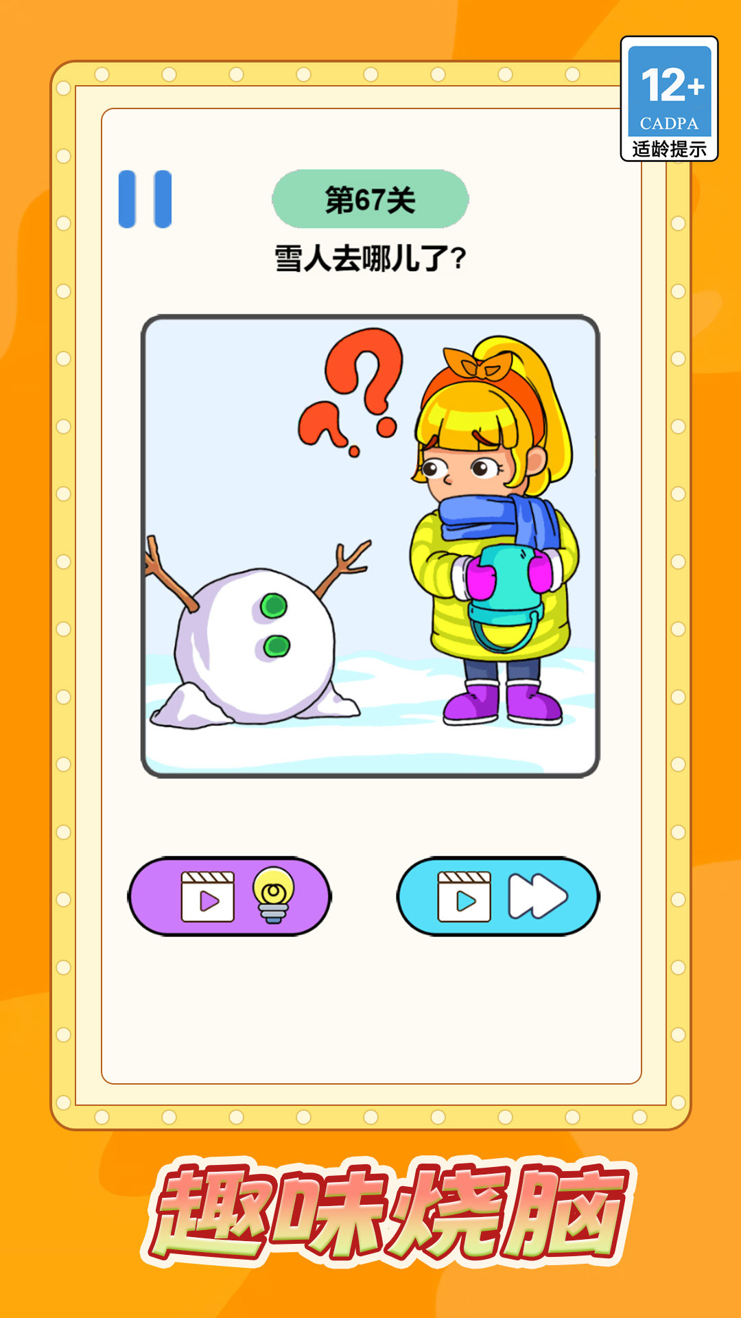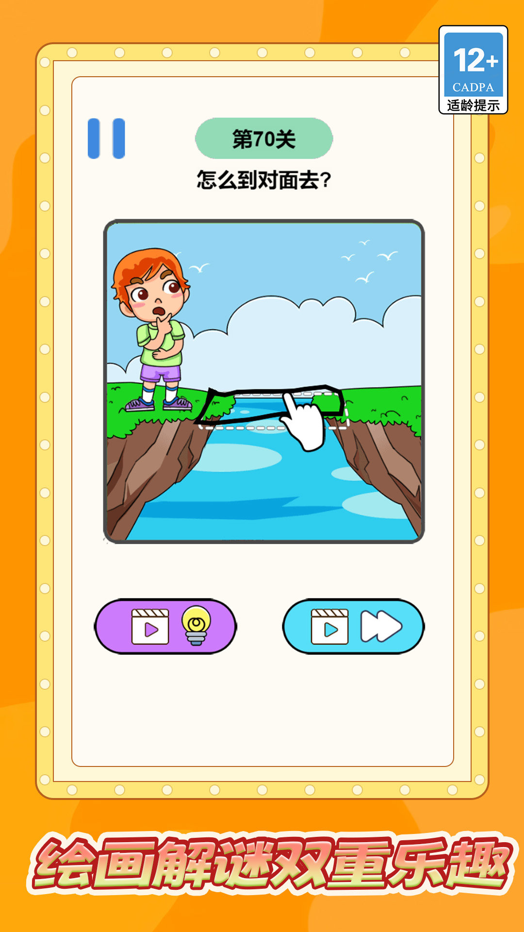 脑洞瞎涂涂是一款充满创意与趣味的绘画解谜游戏。在游戏中,每个关卡都会呈现一个独特的情景画面,但画面中总会有一些关键部分缺失。玩家需要发挥想象力,用涂鸦的方式将画面补充完整,使其符合关卡设定的目标任务。游戏玩法简单却极具挑战性,既能锻炼玩家的观察力,又能激发艺术创造力。无论是喜欢绘画的艺术家,还是热爱解谜的玩家,都能在这款游戏中找到乐趣。现在就下载体验,开启你的创意涂鸦之旅吧!