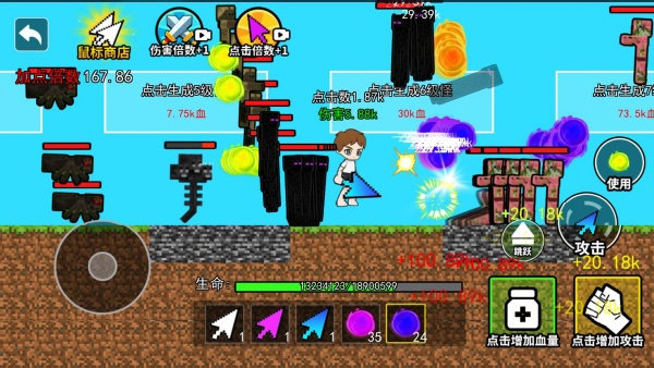 1.游戏的核心爽点在于视觉上极具冲击力的伤害数值反馈,巨大的红色数字不断跳出并累积,带来巨大成就感。