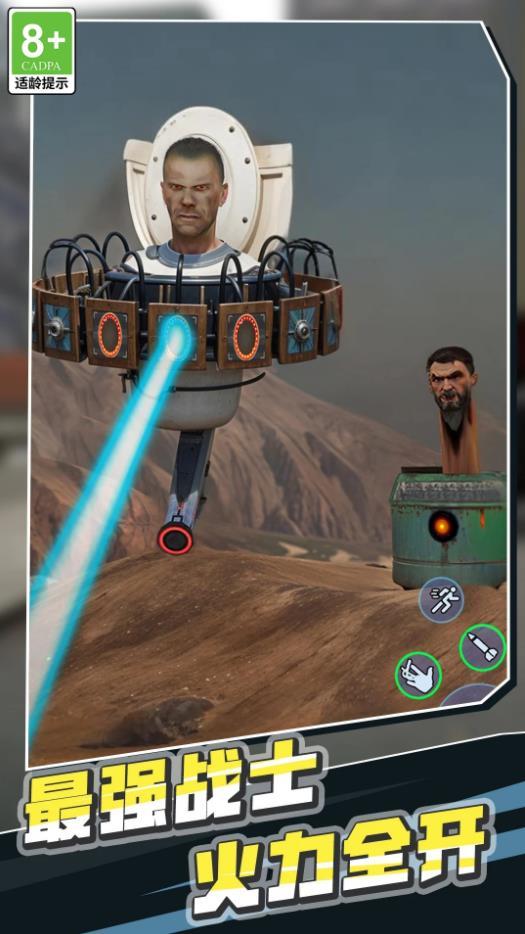 1. 玩家通过虚拟摇杆和按键控制马桶人移动、瞄准与射击,在不同地形中灵活穿梭并与敌人周旋对抗。