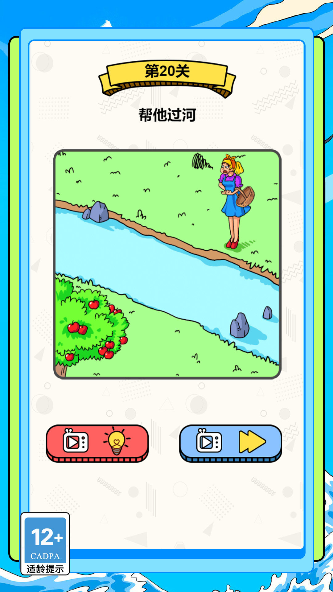 1、第一关比较的简单,根据问题以及虚线,画出合适的食物即可过关;