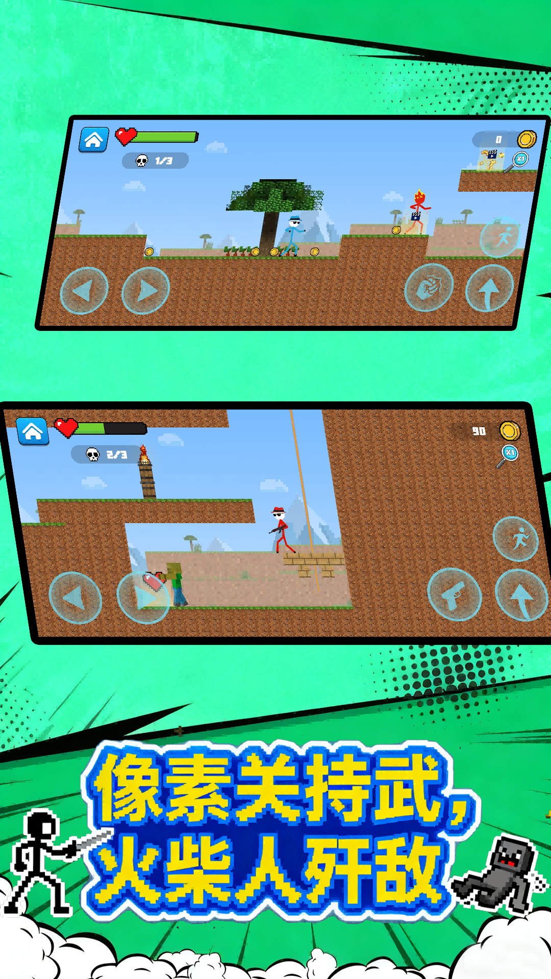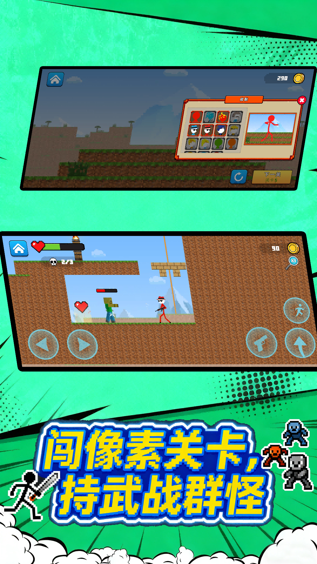 3.自由选择和解锁各种火柴人角色,每个角色都有独特的技能和风格。