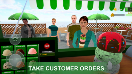 在游戏中玩家需根据顾客订单选择蛋筒、纸杯或华夫碗作为容器