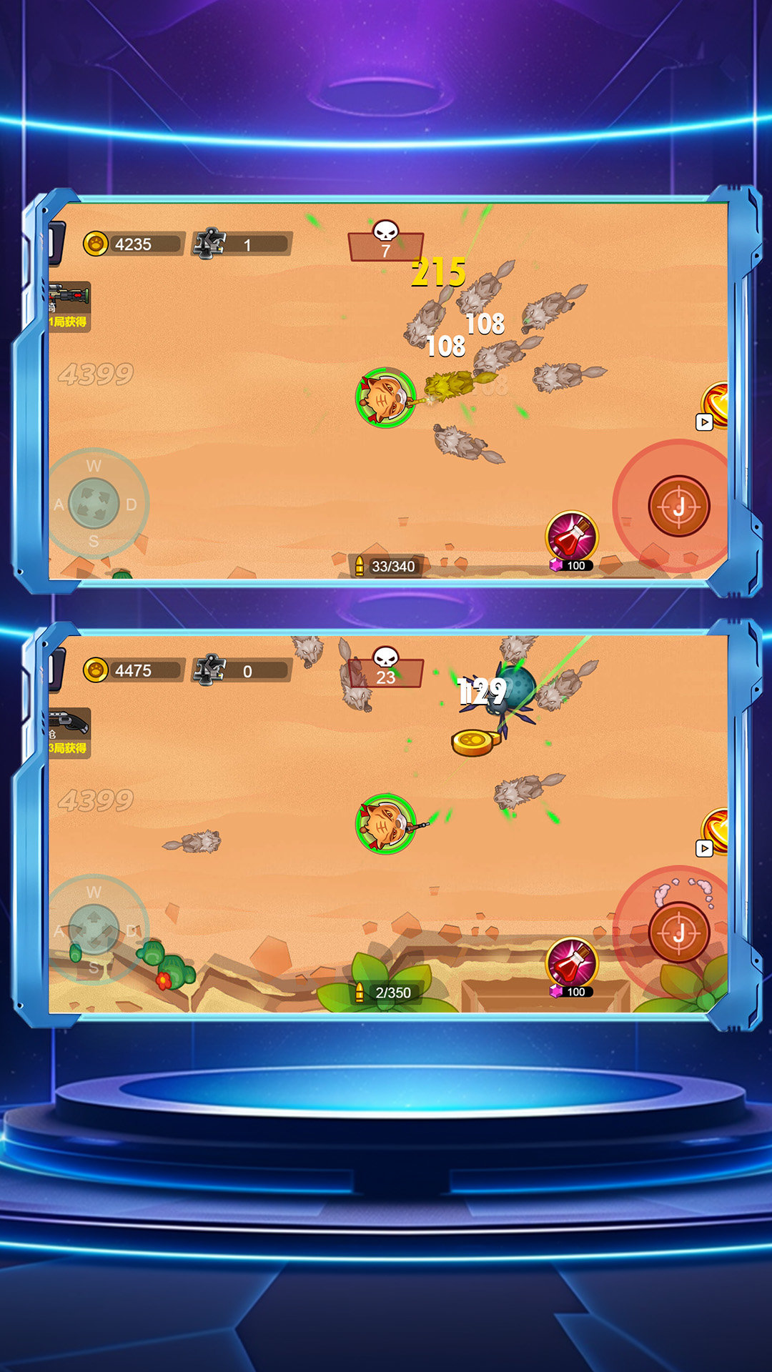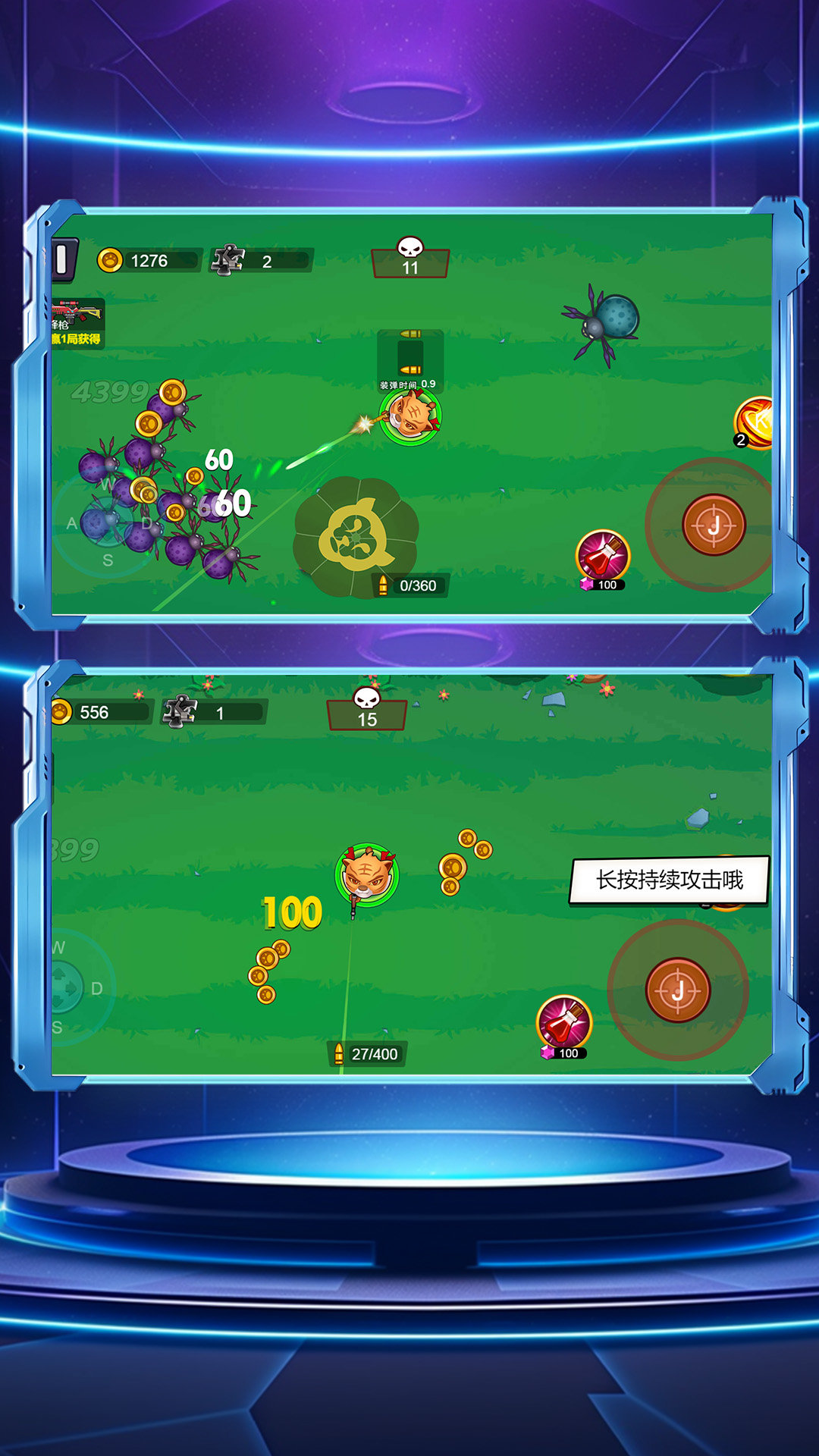 2、通过闯关收获的资源强化自身火力配置,升级射击武器的威力与射程,解锁更强的火力输出方式。