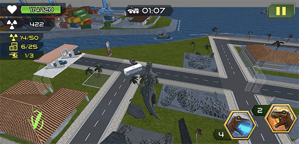 辐射恐龙破坏是一款破坏解压游戏。游戏中玩家将操控一只巨大的恐龙在城市内破坏,整个城市非常庞大,各种各样的建筑场景都会出现,玩家要做的就是随意破坏,当然游戏也会给予一定的任务挑战,只要将其完成即可获得额外奖励,让玩家操控的恐龙变得更加强大,玩起来更加爽快刺激。游戏目前一共为玩家设计了六个关卡,每一关都是全新的设计,给予玩家丰富的选择。