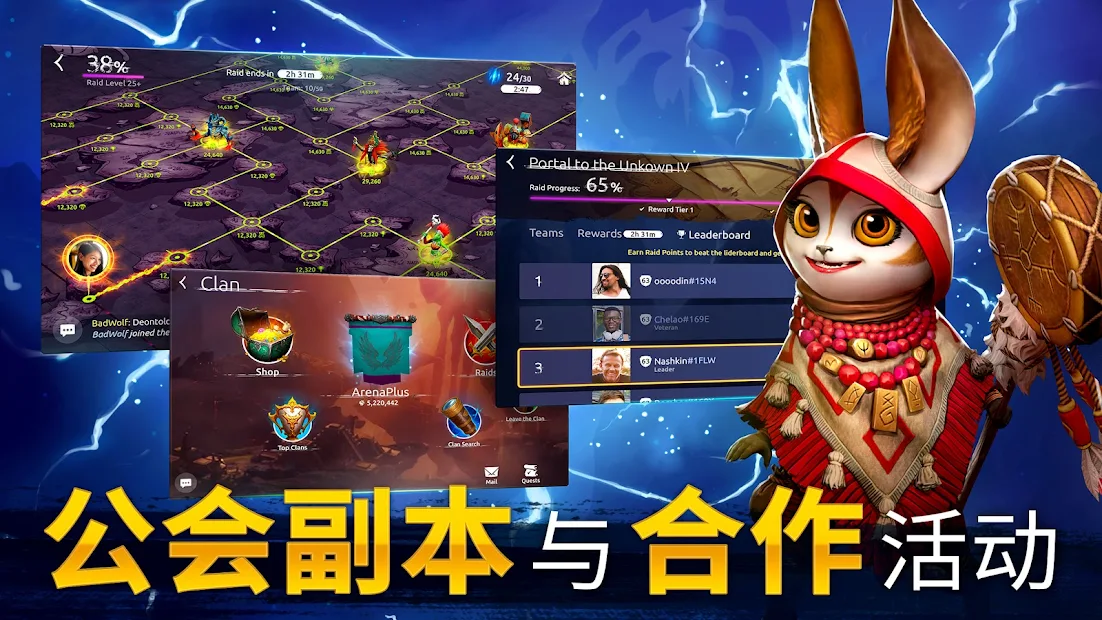 3、加入一个公会或者创建您自己的公会,挑战各种公会副本,获得高级装备和副本币,在副本商店中兑换稀有英雄的碎片。