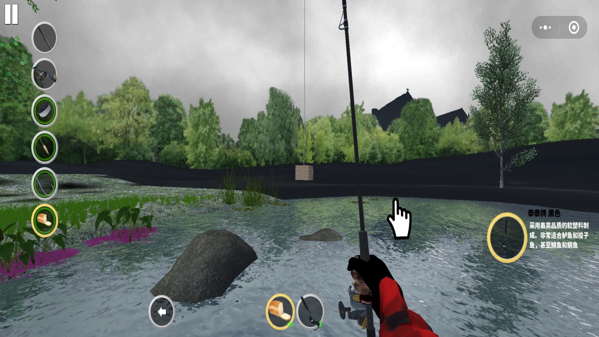 3、场景和鱼的模型采用拟真3D模型设计,钓具则采用卡通风格的画风展示,形成对比,让人方法身临其境。