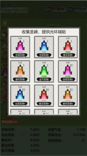 割草:游戏的所呈现给玩家的割草玩法可以说是相当的草率了,部分割草游戏是省略了攻击键位,但是这款游戏直接不让玩家干涉,移动键位也是直接抛除了,玩家在这款游戏中只能干巴巴地看着角色与敌人碰撞,吞噬,纯放置体验,压根不需要玩家干涉,的确是极致休闲了,蛮适合一些摆烂型玩家体验,但是也的确是没什么可玩性,太无聊了些。