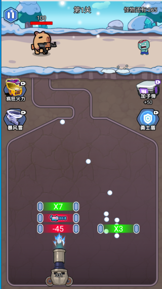 地坑打个僵尸是一款雪地弹射闯关手游,玩家操控底部炮台发射雪球,通过精心计算角度,让雪球在管道中反弹并最终击中上方的僵尸怪物,游戏中可收集各类增益Buff强化火力,解锁强力技能,并搭配防御与补给道具,以消灭所有怪物为目标,体验轻松而富有策略的闯关乐趣。