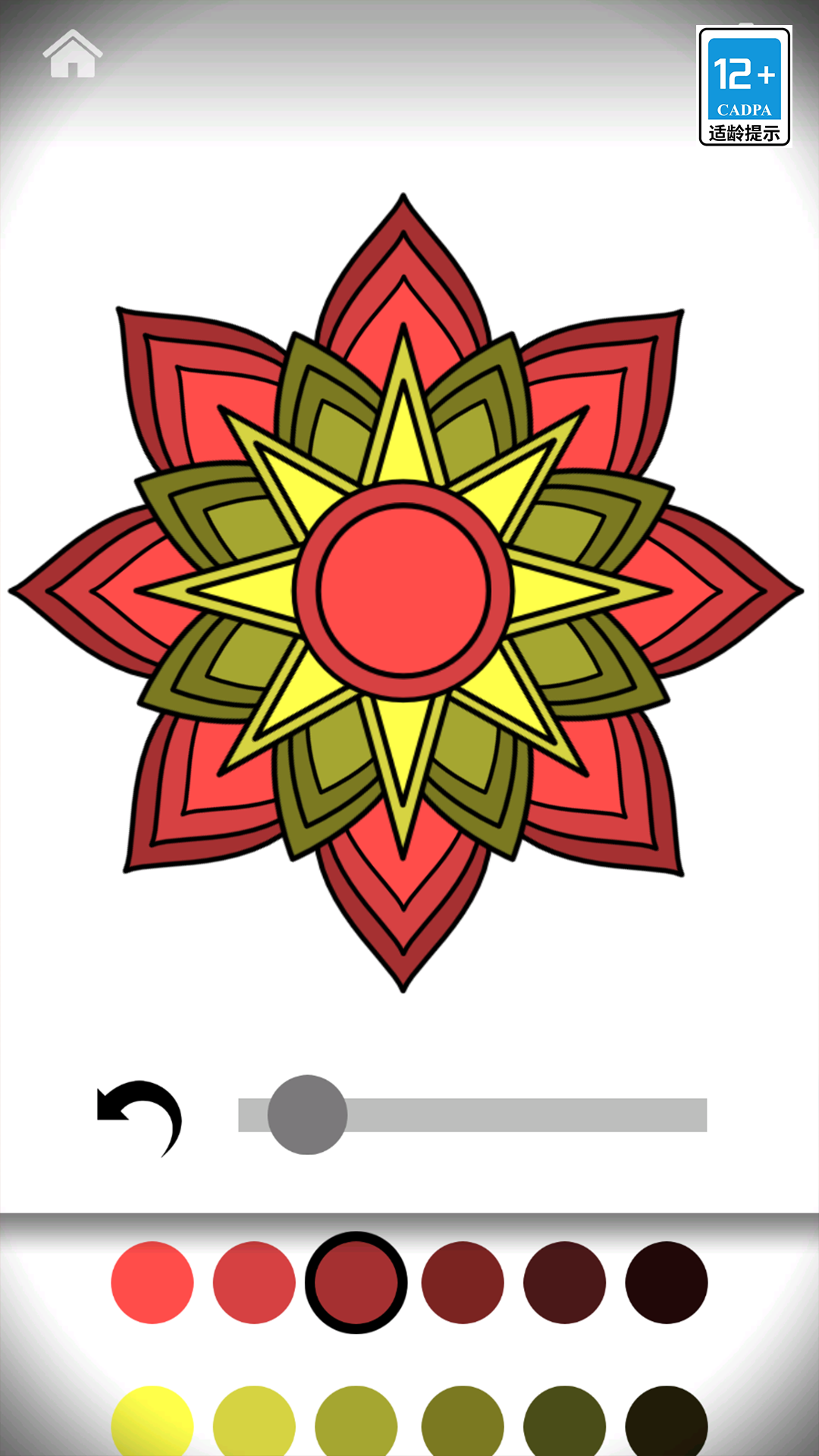 1、在填色模块中选择一幅线条精致的花卉图案,然后通过点击为每个区域填充你喜欢的任何颜色。