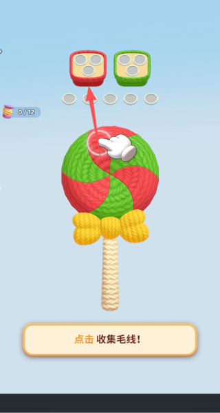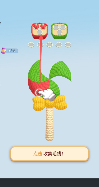 1、简单的点击的玩法,我们可以选择去点击上方有的颜色的毛线,比较好消除。