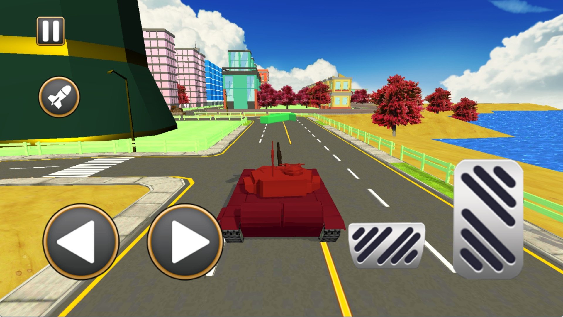 1、进入游戏,你的基地正在被攻击,将您的军用坦克从城市开到机场,避免空袭击落任何挡住你去路的敌人路障。