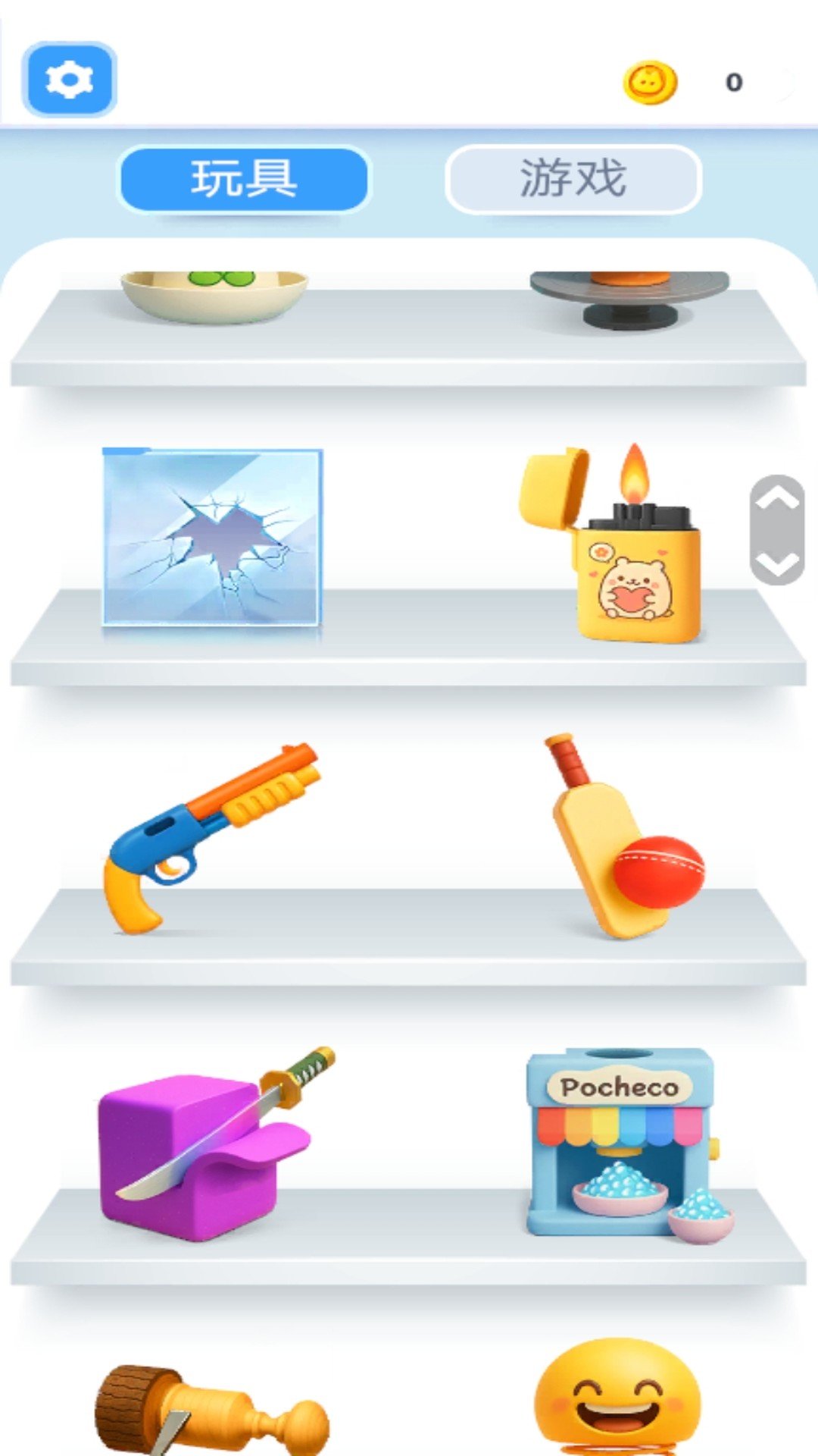 1、进入游戏可以选择不同的道具,开启欢乐的解压大闯关。