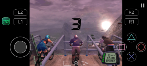 暴走山地自行车中文版比赛中需灵活操控自行车,把握好转弯、跳跃与漂移的节奏;当遇到对手时,可通过按【O】发动肘击攻击,打乱对方的节奏,率先抵达终点即可取得胜利。