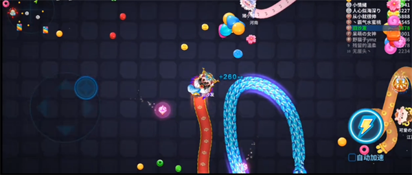 2、游戏操控简单易用,玩家只需控制蛇,进行更加灵活的移动,避免撞到其他蛇;