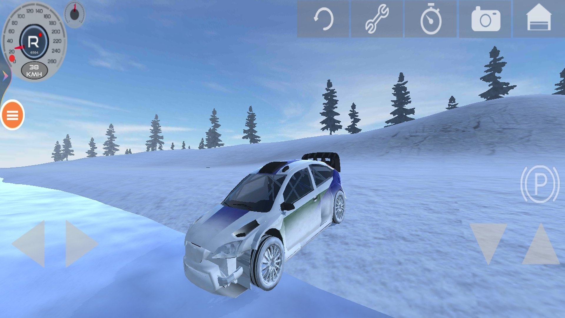 在雪地道路中驾驶汽车,玩家要快速启动汽车,自由选择自己的驾驶路线。