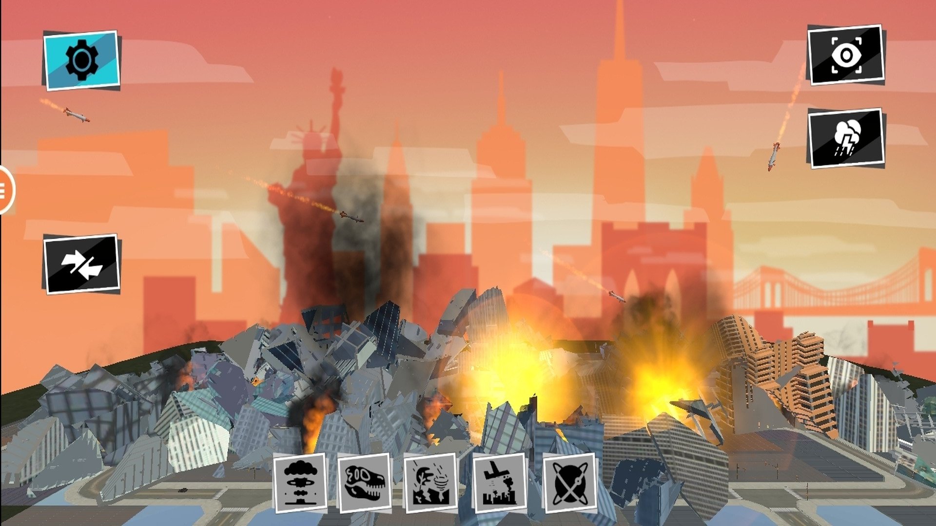 游戏模式十分多,玩家可以选择自己喜欢的模式进行体验。你可以选择想要毁灭的房屋场景,如果嫌房子太大,砸起来太累,那你就用道具中的火箭筒把房子直接炸飞。相比于一秒摧毁全部内容的火箭筒,逐渐扫射的手枪也是非常不错的。