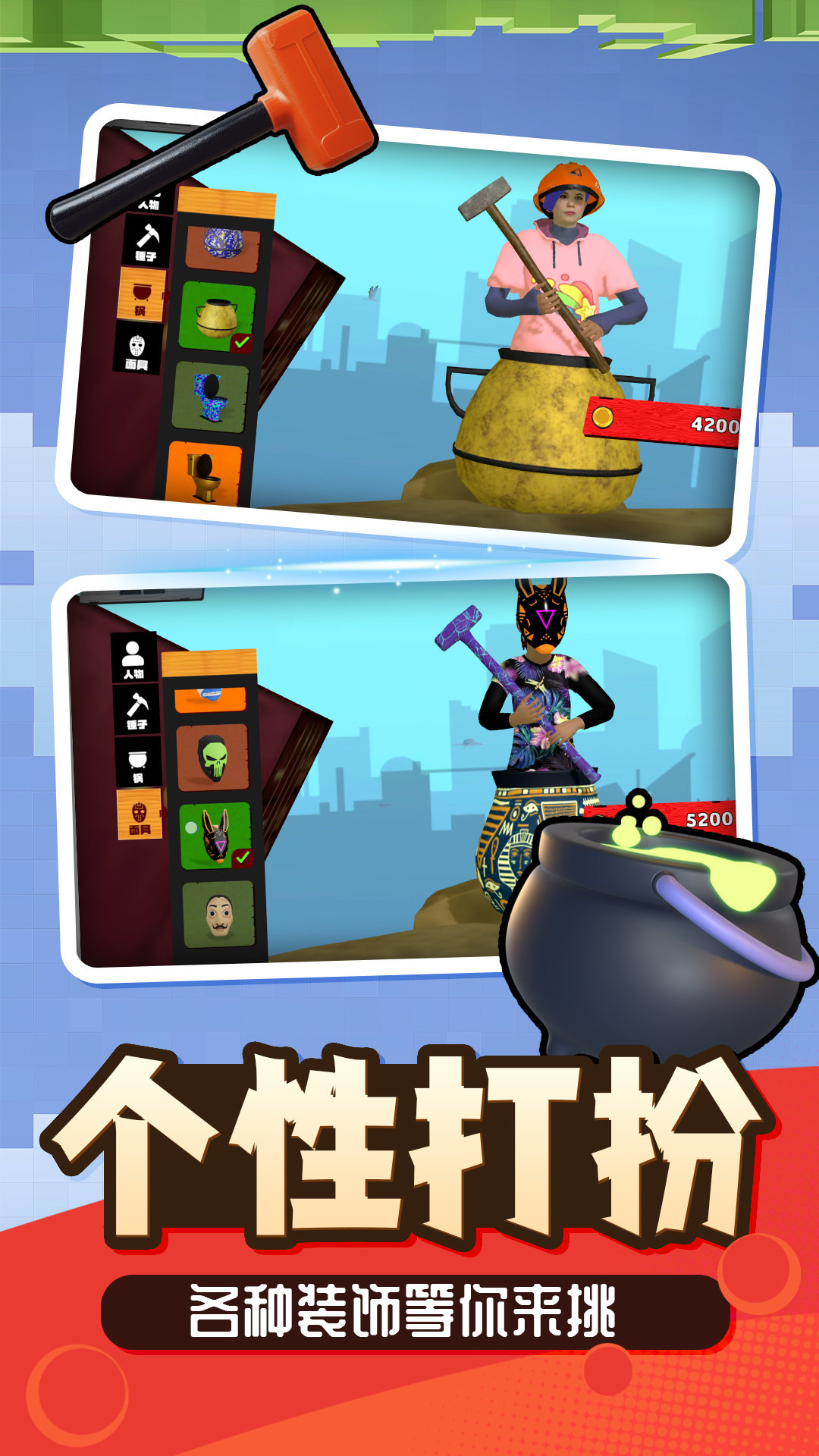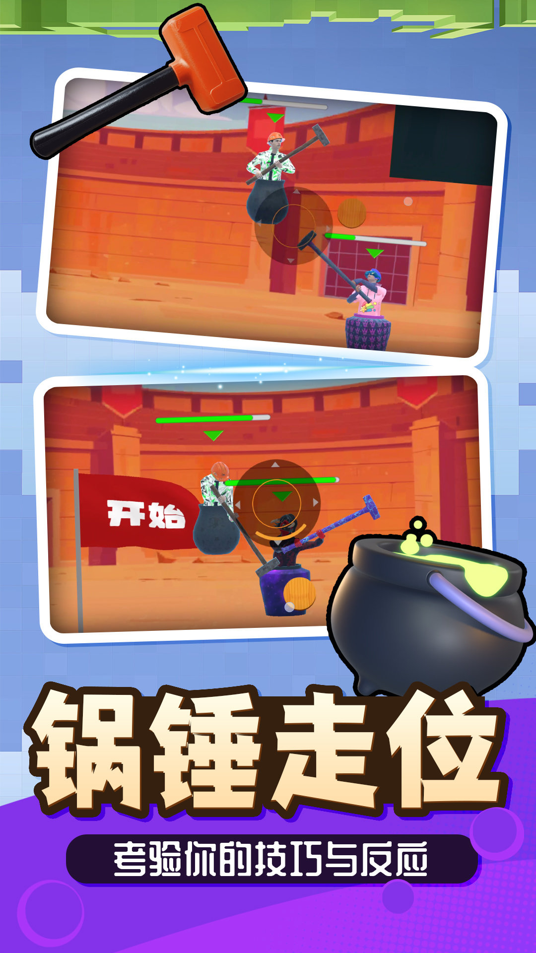1、玩家控制一名被困在罐中的角色,罐体提供防御但限制移动范围,需通过挥锤攻击或破坏环境互动;