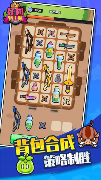 花园特工队是一款融合肉鸽和塔防元素的休闲策略游戏,Q萌卡通画风治愈解压,核心围绕背包合成展开有限空间内搭配武器装备合成进阶打造专属战力,随机词条与奇遇带来新鲜感关卡丰富且支持单手操作,在守护花园的闯关冒险中,在这里是能够尽享策略与休闲的丰富游戏乐趣。