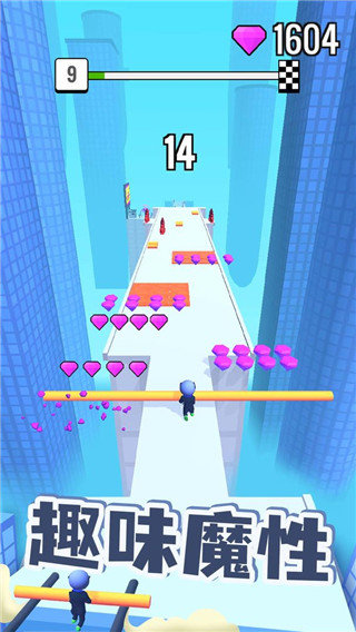 1、每个玩家都会控制自己可爱的小个子在楼顶来回穿梭,展示实力,尽可能多的收集地上的棍子。只有当你手中的棍子越来越长,你才会有更多的希望。