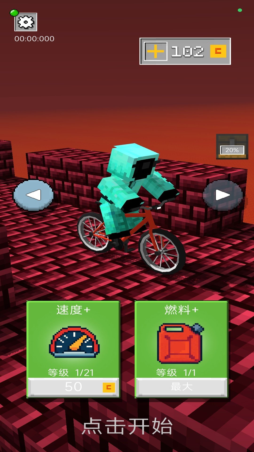 3.进入关卡地图后,玩家可以升级速度和燃料等级。准备完毕之后点击屏幕任意位置即可开始闯关。