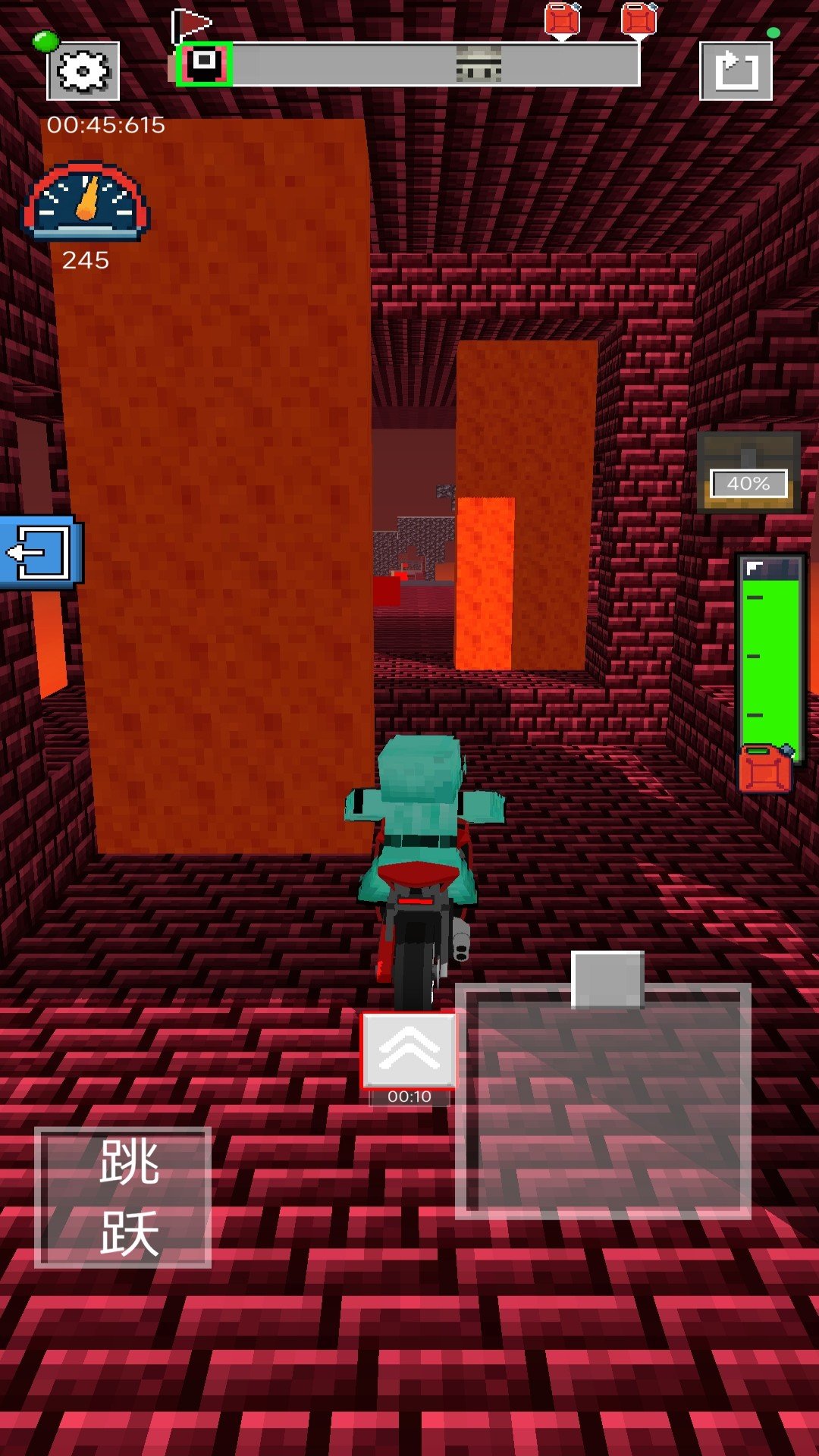 4.右手控制摩托车的前进方向,左侧控制跳跃,躲避各种危险成功冲刺到终点吧!