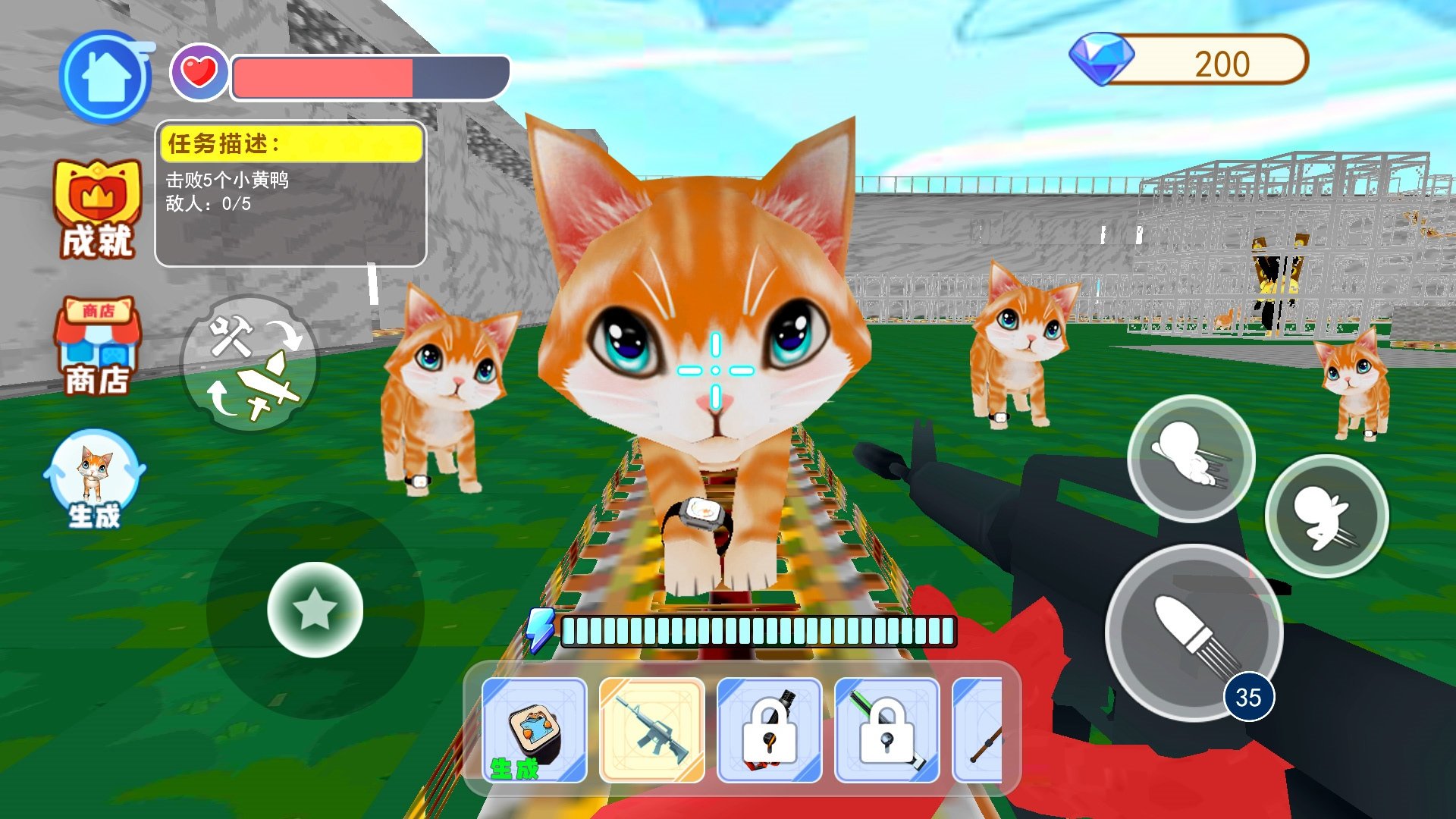 2、进入游戏,通过拖动左下角操纵杆来控制角色的移动方向;点击右下角翅膀图标,可以让角色飞起来;