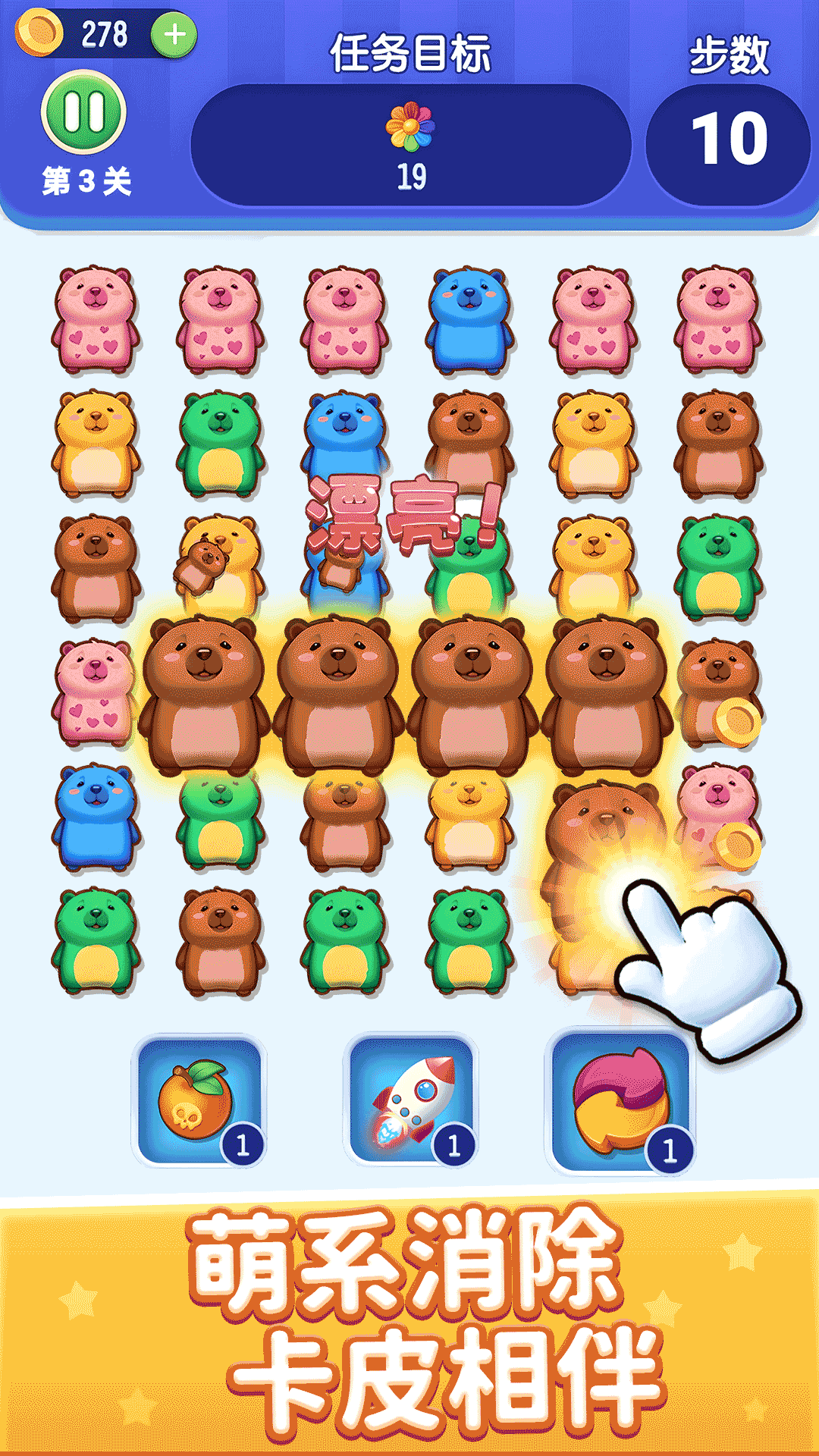 2、游戏玩法简便,操作系统流畅,玩家可充分享受消除闯关的乐趣。