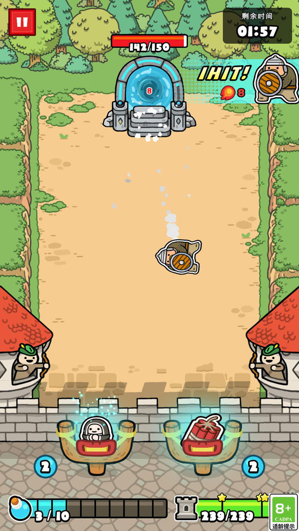 1、点击左右两侧的基地,滑动可以控制瞄准方向,松开手投放你的士兵。