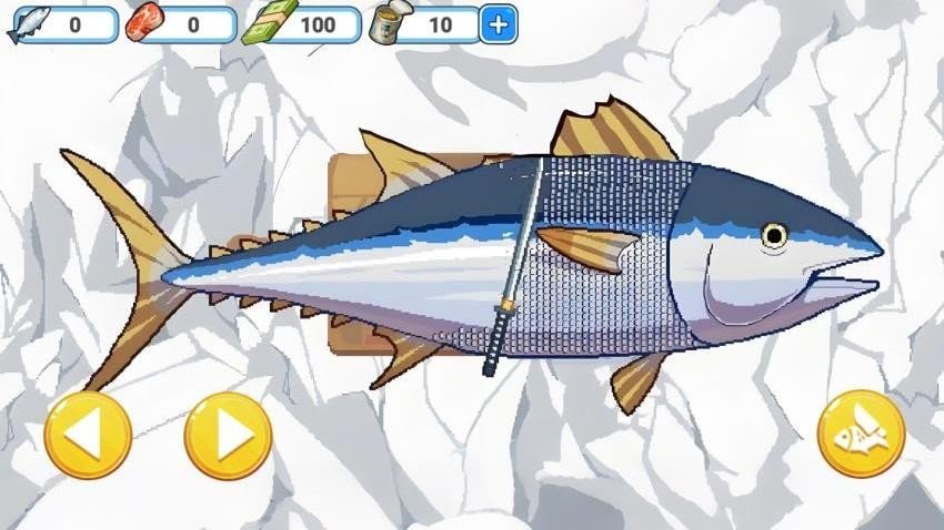 每次成功捕捉鱼类都可以直接进入刮鱼鳞界面,可以控制刀具左右移动去除鱼鳞