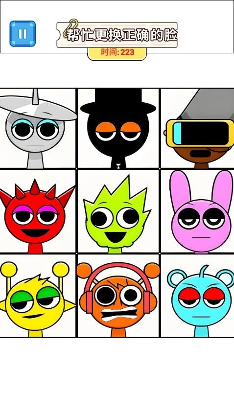 2、帮忙更换正确的脸,游戏界面显示很多怪物,你需要找到正确的脸部