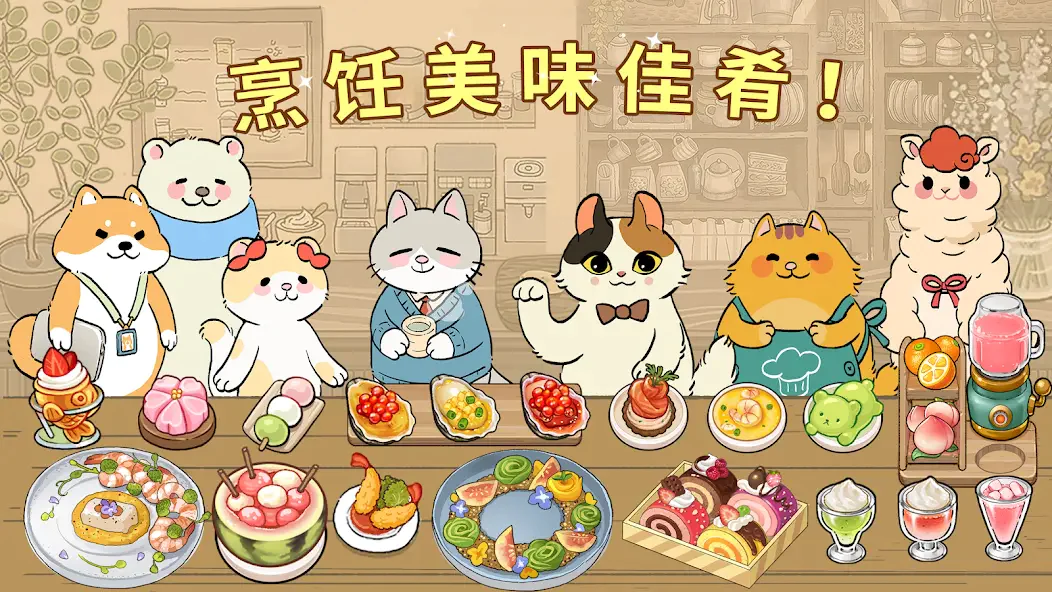 高度自由定制:从餐具、桌椅到墙面挂饰皆可自由搭配,支持DIY餐厅风格。玩家可雇佣不同技能猫咪员工,规划独特运营策略,打造真正属于自己的料理空间。