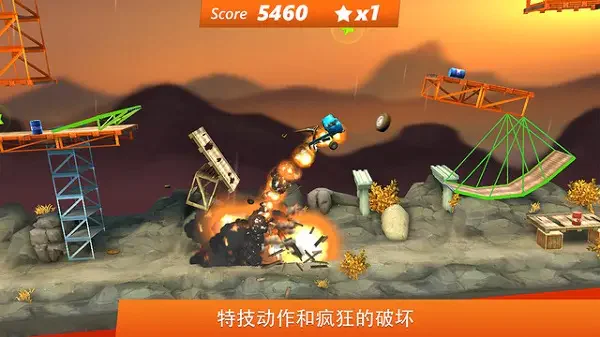 建设壮观的坡道和回路,在不同阶段到达目标位置。但是这次单是建筑物是不够的:您自己就坐在车轮后面,必须使用技巧操控车辆向目标前进。收集星星、完成不怕死的跳跃、翻转以及引人注目的特技动作,整个等级中一路破坏以赢得高分。但在完成整个过程时,您只能使用建设完美的桥梁和坡道。