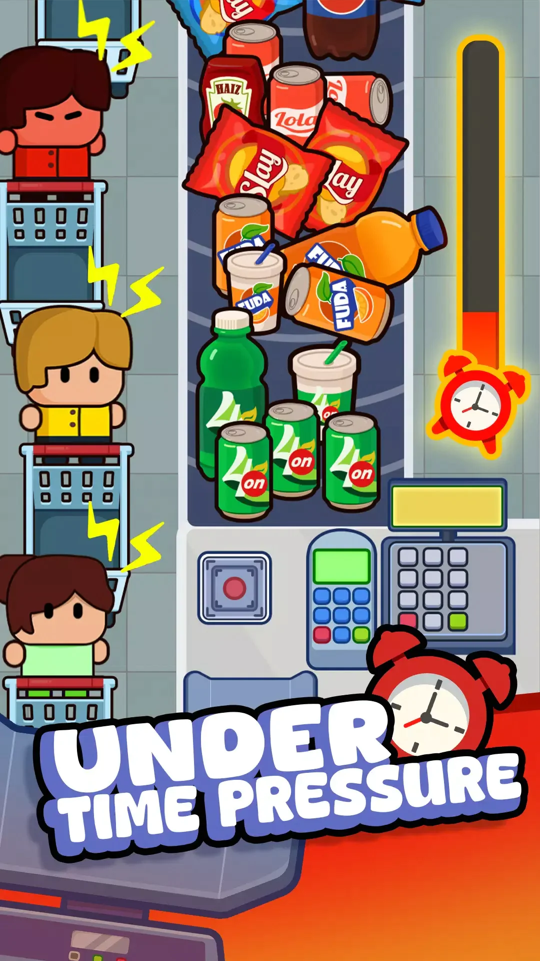 3、拓展和管理您的商店将您的小杂货店打造成一个熙熙攘攘的超市。解锁并展示新产品——饮料、零食、新鲜食品——并保持库存充足,以吸引更多顾客。