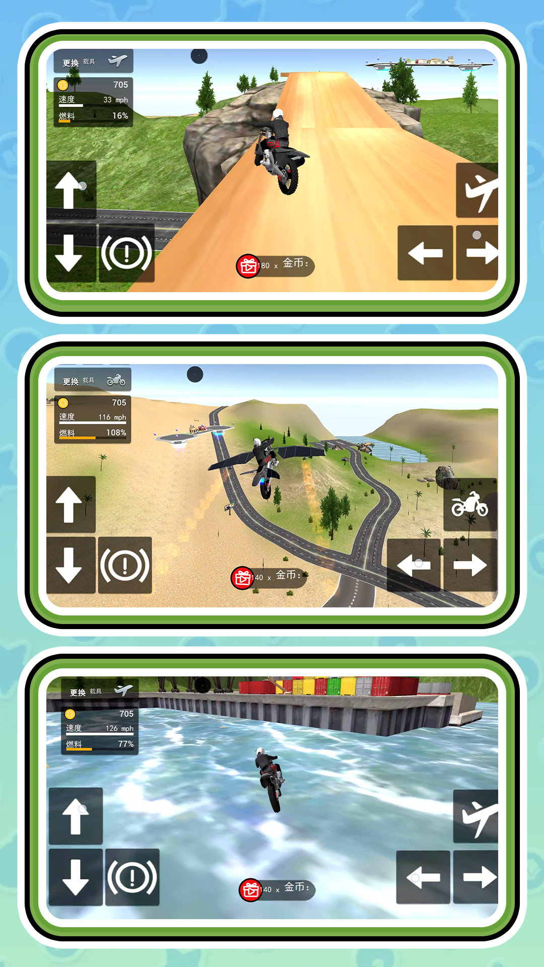 4、摩特车自由变形,开始冲刺飞跃。