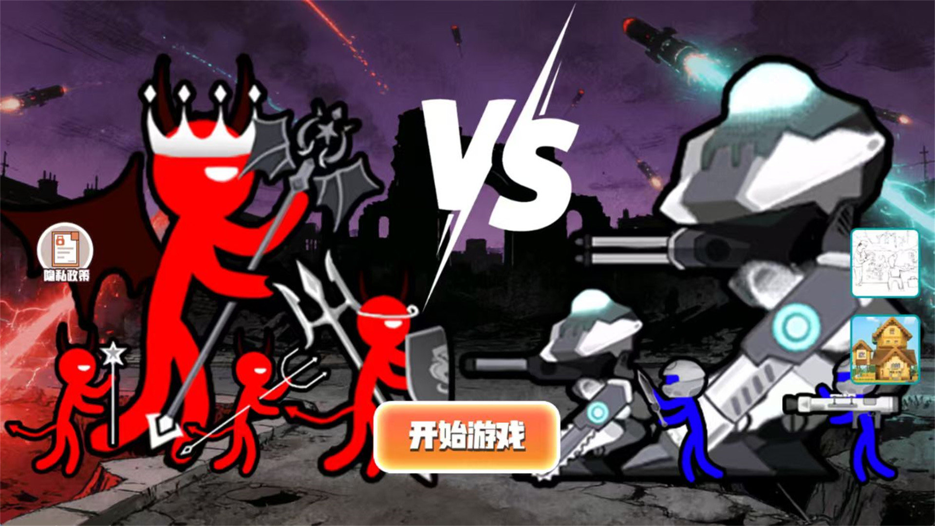 火柴人彩色大战是一款以火柴人为主角而展开的策略性战争模拟游戏,玩家扮演部落领袖,招募并指挥矿工、剑士、弓箭手、矛士、巫师、巨人等多样化兵种,每个兵种拥有独特技能与定位。战斗中需根据敌人类型,如速攻型、重甲型和地形动态调整兵种搭配,例如用巫师克制巨人,或以弓箭手远程消耗敌方,击败所有敌人,取得最终胜利。