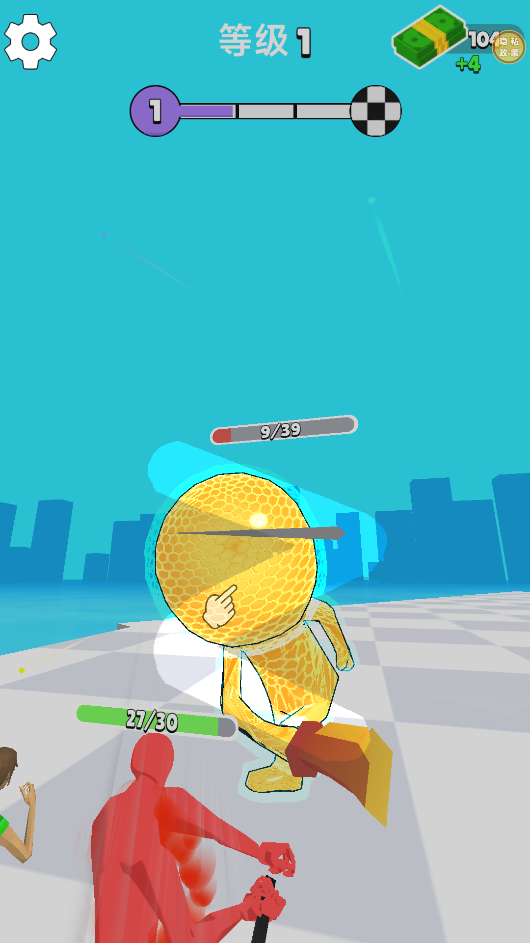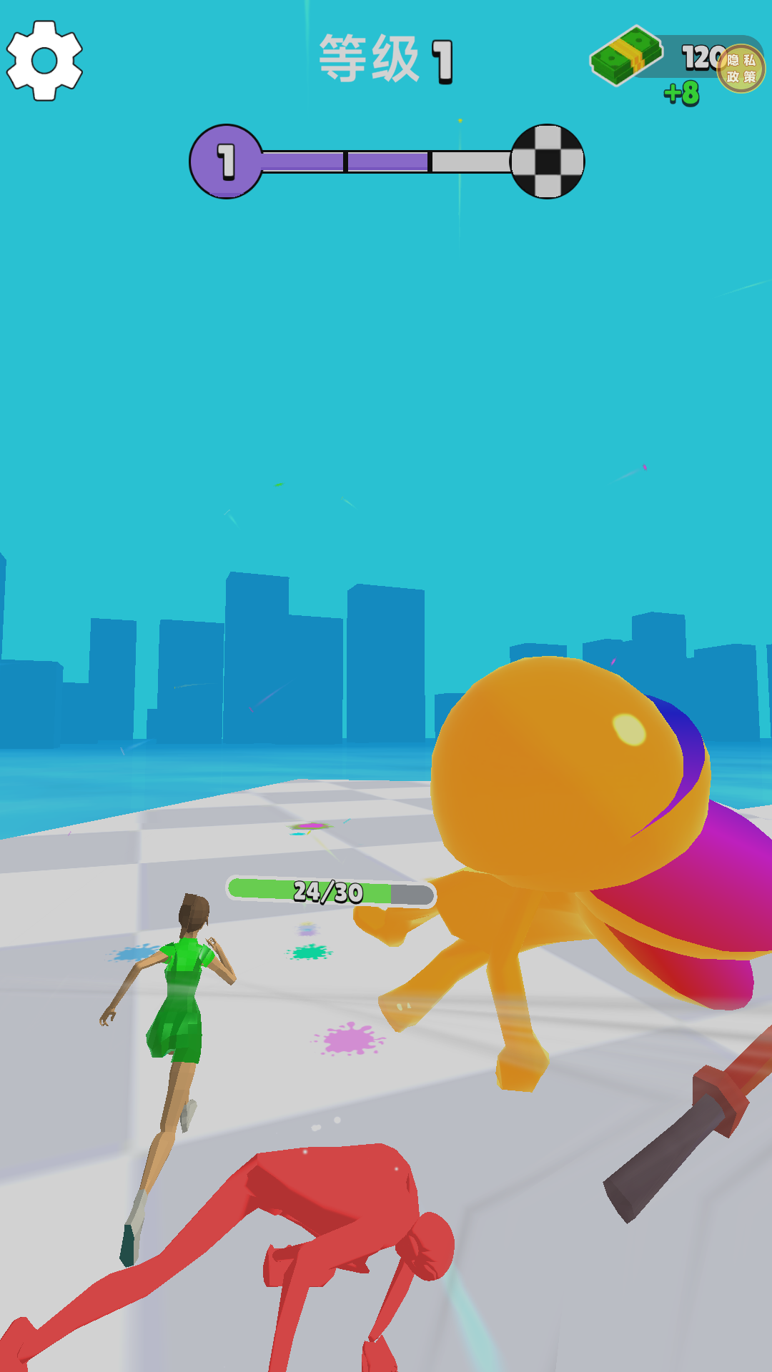 1、开局推进技巧:进入游戏后,滑动屏幕控制角色向前奔跑,主动搜寻小黄人发起对决,完成击倒任务即可获取金币奖励,为后续闯关积累基础;