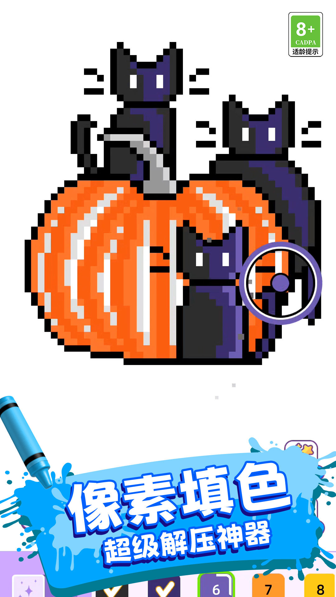 这是一款轻松有趣的像素填色绘画游戏。玩家通过指尖操作,为一键涂色模板或空白像素图案填色,可画出可爱小狗、黑猫南瓜等有趣形象。游戏提供超多形象等你绘制,是释放压力、发挥创意的绝佳选择,带来愉悦的绘画体验。
