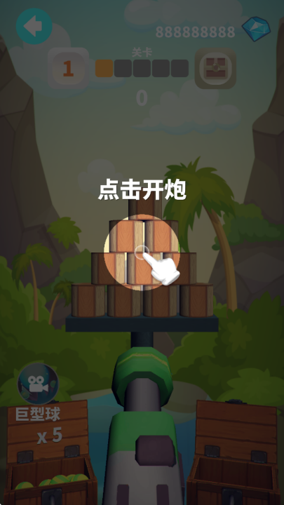 瞄准障碍物发起射击,利用小球撞击力击飞、击落障碍物。