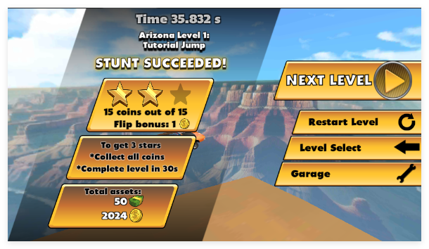 以“高难度特技表演”为核心,设计悬崖飞驰、空中180度旋转、穿越火圈等多样特技任务,每个任务都极具挑战性与视觉冲击力。