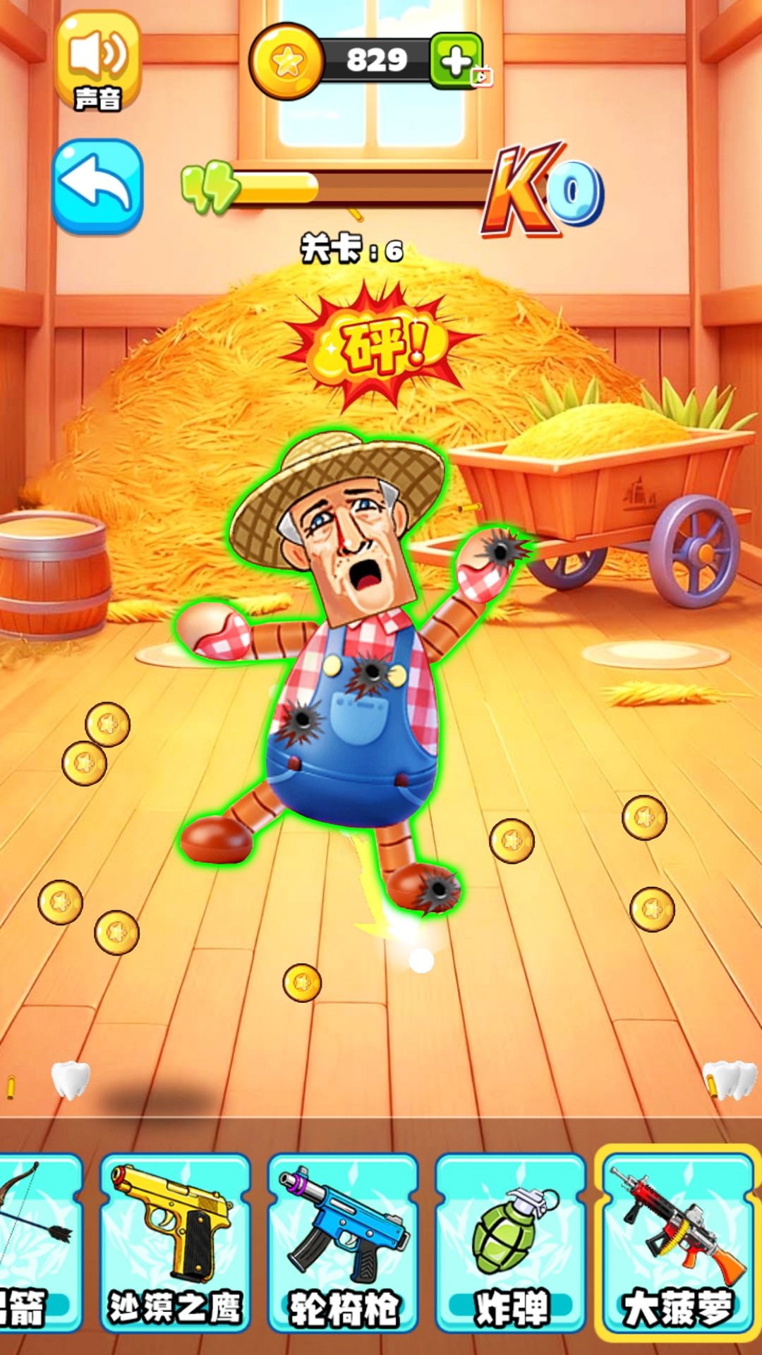 2、可以用收集到的金币在商店里兑换各种道具,比如从初级的拳套到高级的火炮,每种工具都能提升破坏力。