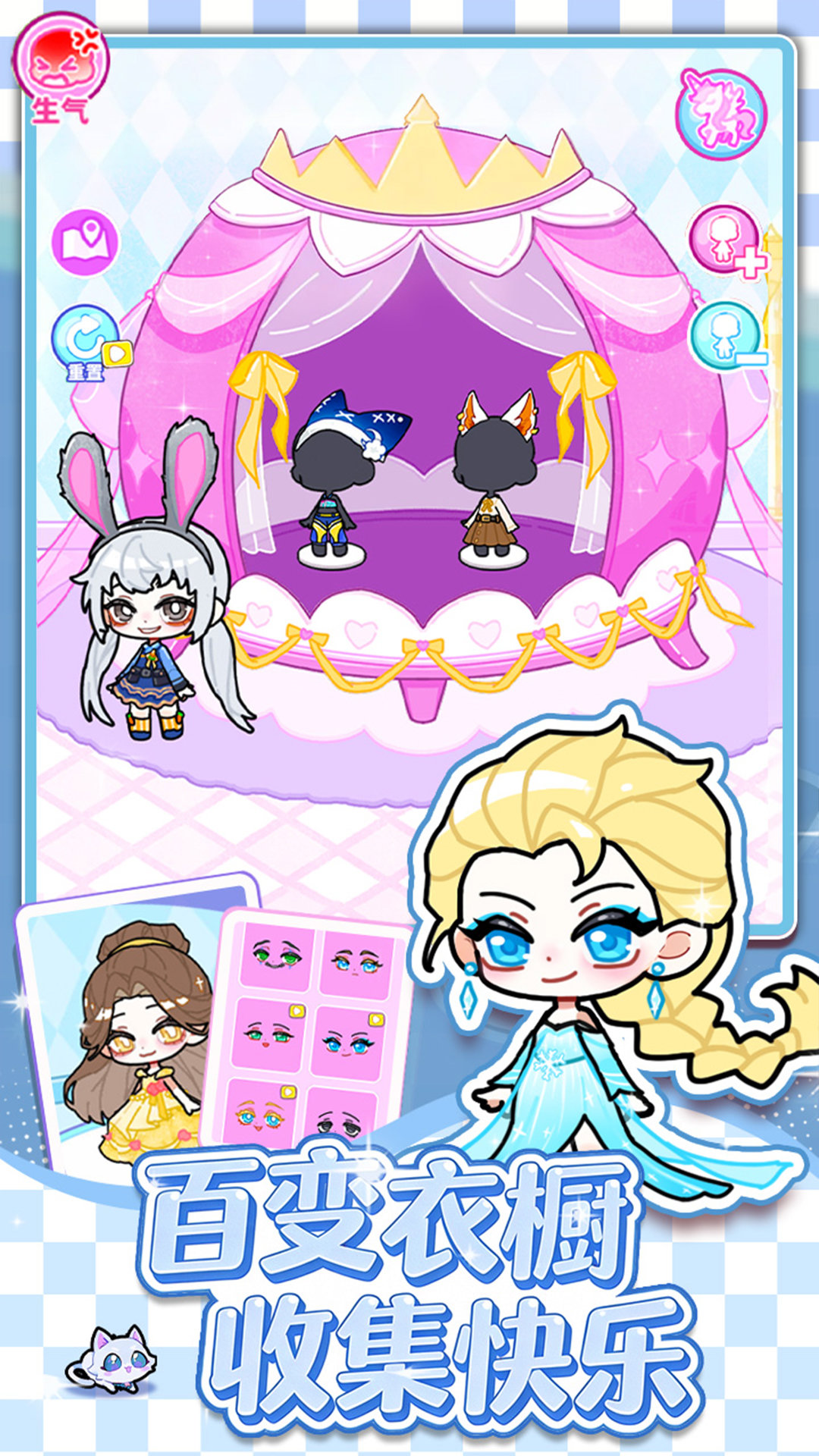 1、将换装装扮与世界搭建融合,既可以随心搭配海量萌趣服饰也能自由打造小镇场景,双重创意玩法满足创作需求。