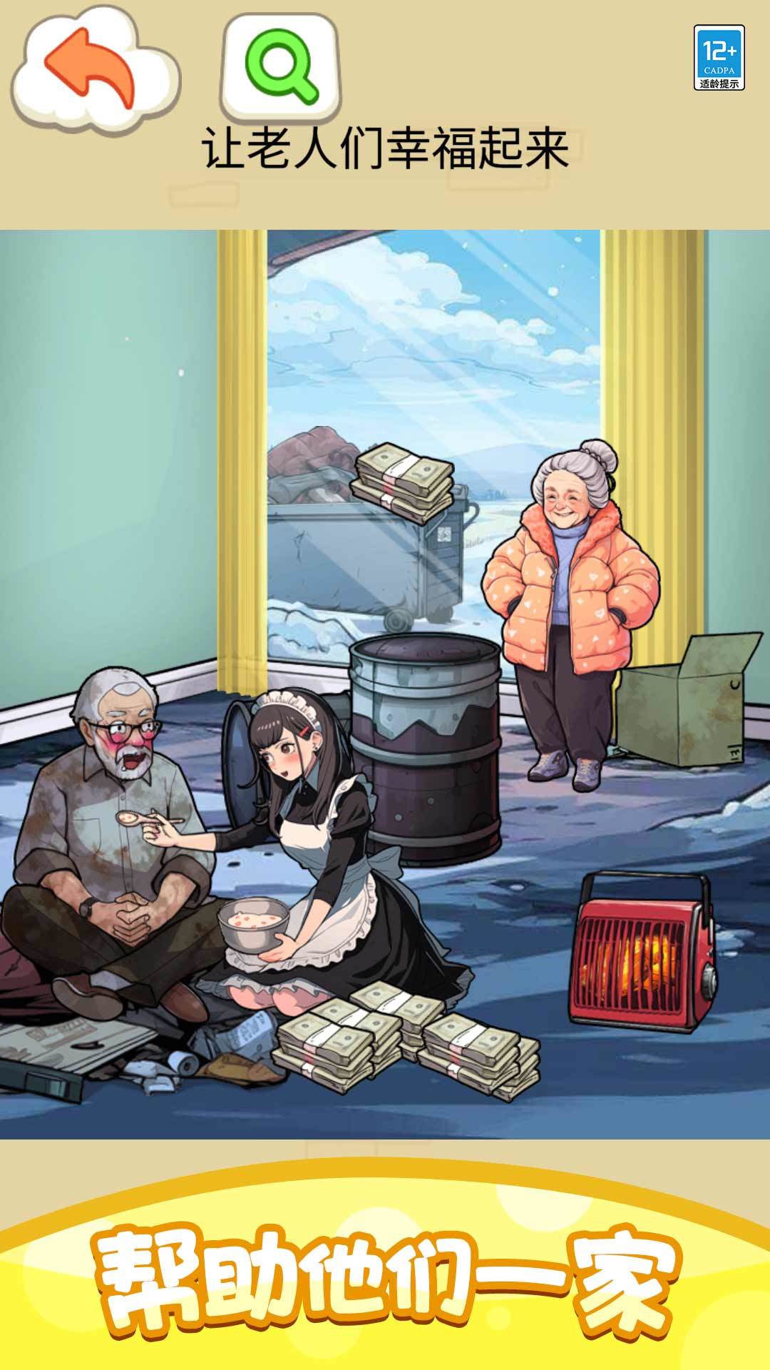 3、场景当中有很多角色,把年夜饭拖到他们身边,就可以吃掉。