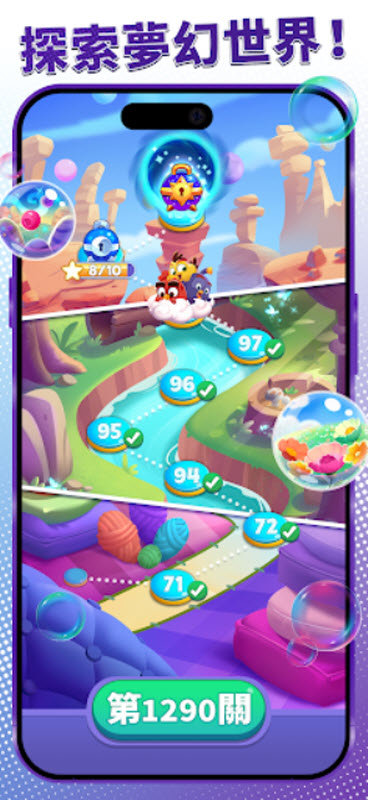 1、在游戏关卡内,通过点击2个或更多泡泡来收集它们。