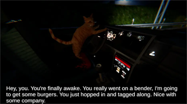1、从第一游进入到猫司机游戏中,你将与一只爱唠叨的猫共乘驾驶座,一只小狗则在后座悠然自得。