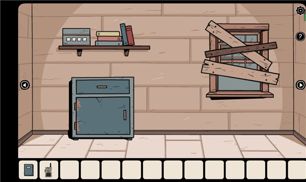 4、在白色门右边的抽屉柜里拿到两节「电池」,先把电池装进对讲机,然后将频道调到4听对讲机里播放的音乐,再点击收音机调整频道至你所听到的音乐频道上(这里要记住频道数字,不同音乐对应不同的频道)。注:组合物品:选择道具-Grab-选择要组合的道具,另外收音机右下方的抽屉里还有一个密码符号。
