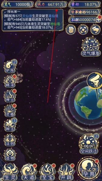 3、我是先点的灵气和孕育双倍概率,最后点战力反正不上中世界,战力管够用。