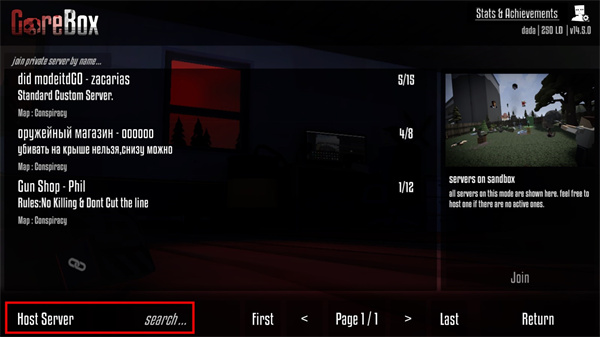 3、如果好友已经创建了房间你可以点击“search”搜索进入,如果没有创建房间就需要点击“Host Server”创建主机来创建房间;