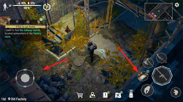 3、左边旋钮控制人物方向移动,右边可以切换武器和进攻